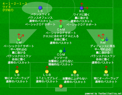 FIFA15の時から使ってる41212ワイドです。バージョンの癖や、その時の選手層に合わせて微調整して、FIFA17ではこのような設定になりました。