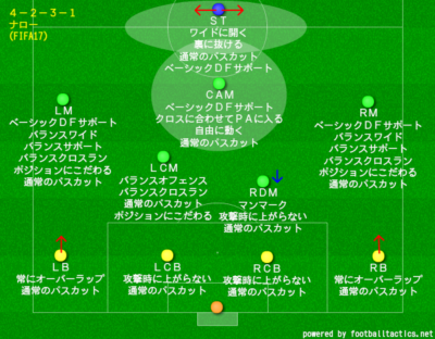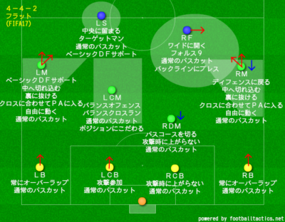 ポジションは流動的に、機動力を生かす戦術になります。足が遅い選手が混ざっていると機能しません。CDMのスタミナの減りが異常なのでボランチのバックアッパーが必要になります。