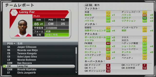 管理人評価:A+ 攻守に走り回り、MFにしてはチャンスに絡むシーンが多い印象。4-3-3のCM、4-4-2(ダイヤモンド)のCMで使用。