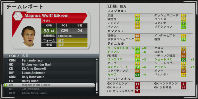 管理人評価:A パス能力に秀でたプレーメーカー・バランサー。4-3-3のCMで使用。